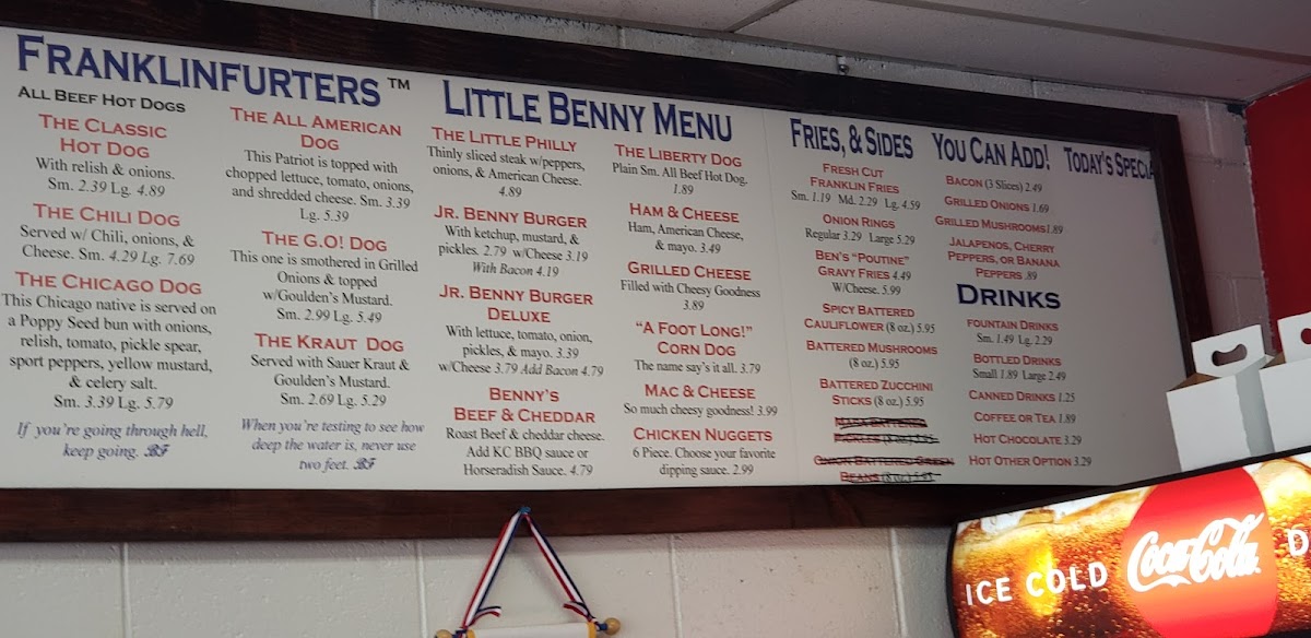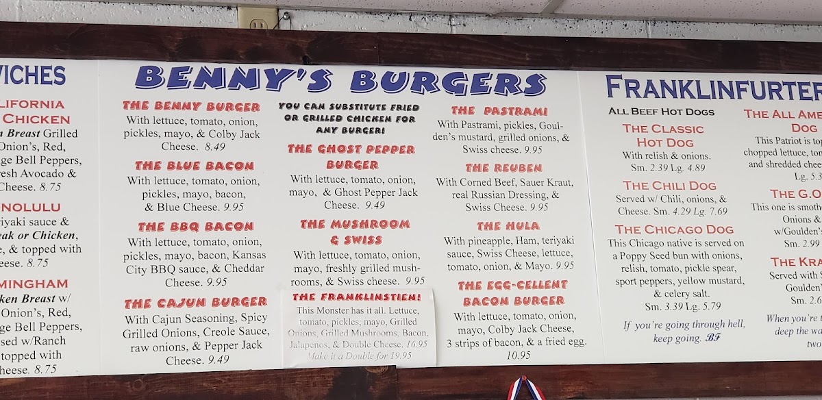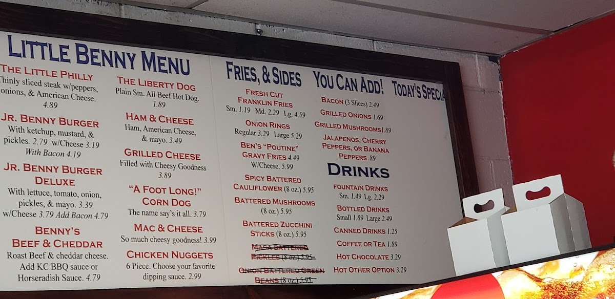 The Little Benny Menu offers delightful options for the younger crowd, with treasures like the Little Philly starting at just $5.75. If you're in the mood for a burger, The Bennyville Burger and its variations are crowd-pleasers. Don't forget to pair your meal with their famous fry sauce!